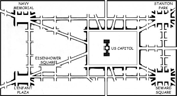 A four-acre site has been selected for the Eisenhower memorial — on Maryland Avenue in Washington’s Southwest quadrant. Maryland Avenue runs southwest from the Capitol and visually terminates at the Jefferson Memorial. It is the symmetrical pair to Pennsylvania Avenue, which runs northwest from the Capitol and terminates at the White House.
