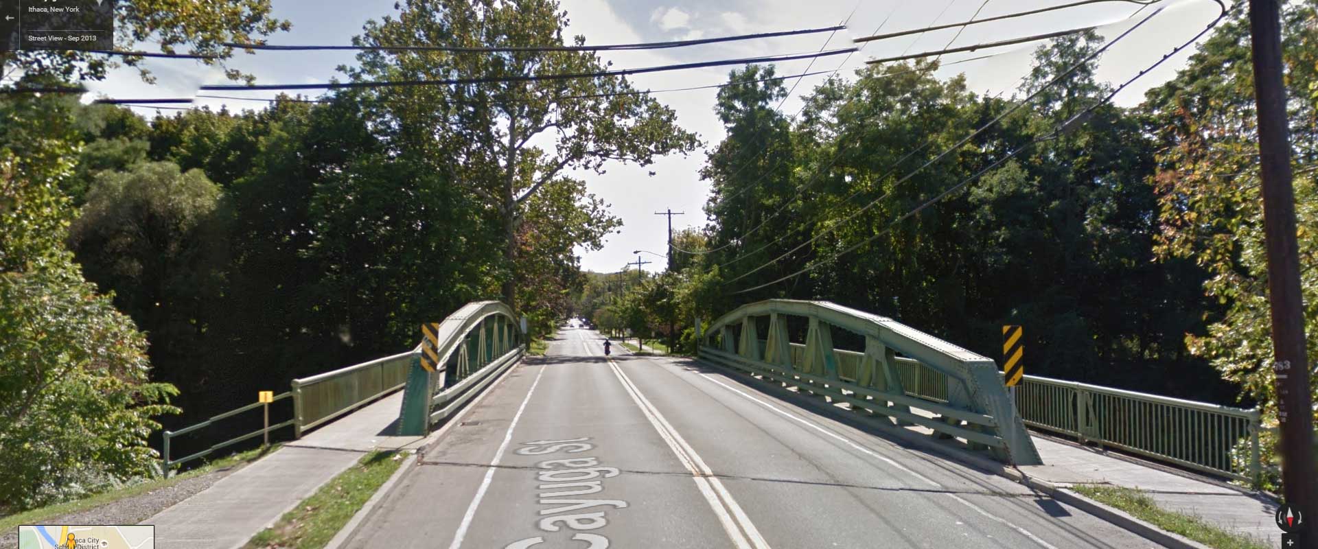 Cayuga Street bridge over Fall Creek, a stone's throw from Route 13, really looks like a bridge. It's two lanes, but you get the idea.