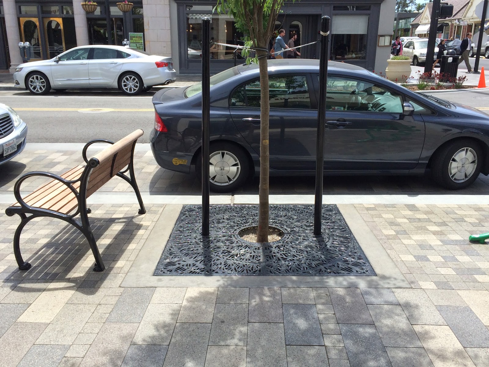 Even the tree grates are attractive. Not only do they add visual appeal, but they show that Burlingame cares about the details, which people appreciate. Not every street needs something this nice, but it is worthwhile to spend a little extra money on the main drag.