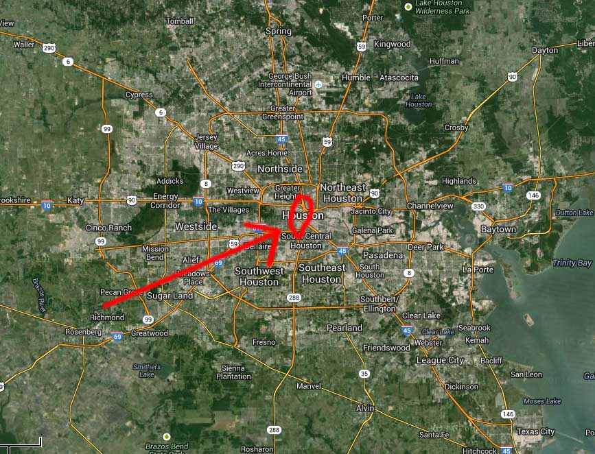 In short, bike sharing is a game-changing technology and trend. It is also entirely dependent on place-based development — a fact that you cannot discern from this report. A reader may get the opposite impression. In the first paragraph of the executive summery, the report states: "… public bicycle sharing programs are finding success even in sprawling car-centric cities." That’s true, but also misleading. In places like Houston, Texas; Charlotte, North Carolina; and Broward County, Florida, all of the bike share stations are located downtown or in compact, walkable neighborhoods. That’s also true nationwide — you can confirm it in a few minutes by checking random bicycle station maps. Here’s a map of the Houston region, for example, and an arrow pointing to all of the B-Cycle stations.
