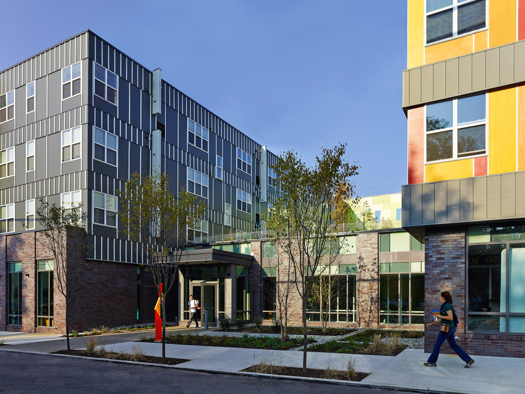 - Reduced parking was enabled through the walkable, transit-adjacent site and by promoting the use of bicycles.