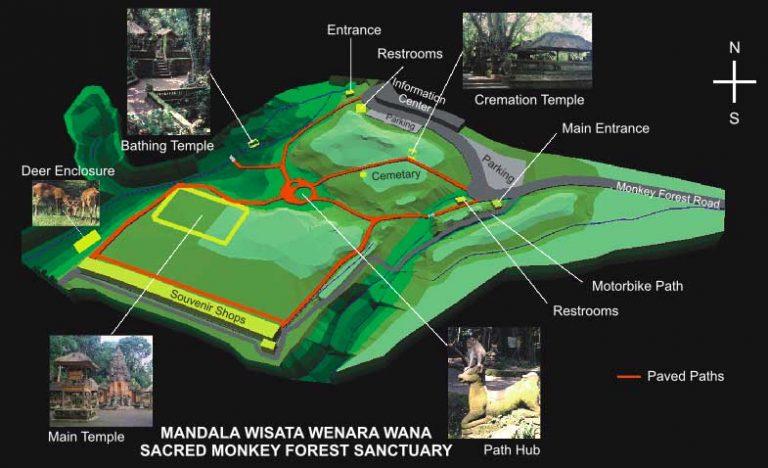 In the heart of the town, lies a unique nature reserve we refer to as The Monkey Forest. This gem, nestled in a lush green forest, serves as a safe haven for a thriving community of approximately 300 macaques. The sanctuary's mission revolves around preserving this idyllic environment and the hallowed essence of the locale. Dotting a forest trail are several sacred temples, contributing to the ethereal ambiance of the reserve. In this protected environment, the monkeys have the freedom to explore at will . As you venture into the park, remember to familiarize yourself with the safety instructions given the unpredictable nature of the macaques, particularly during feeding times.